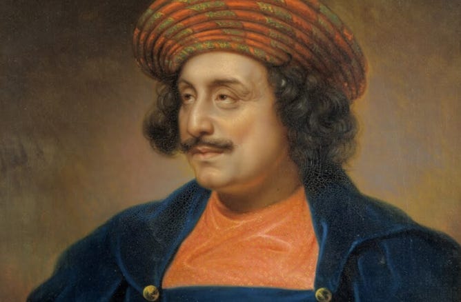 Says Wikipedia: “His father was involved in regional insurrections aided and led by the East India Company, which had replaced the power traditionally held by the Mughal state, reducing its monarch to a figurehead”. [54]