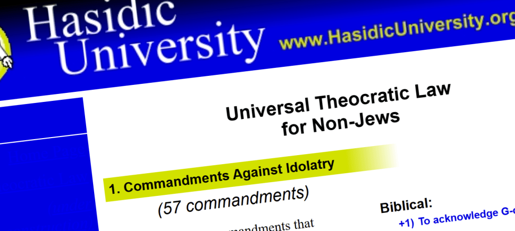 I found some of these on the Hasidic University site – “Universal Theocratic Law for Non-Jews” – which was linked from noahide.com. [12]