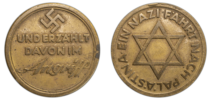 This even involved a leading SS officer visiting Zionist colonies in Palestine – an event celebrated by Joseph Goebbels’ Nazi newspaper Angriff and by a special medal featuring a Star of David on one side and a Swastika on the other. [14]